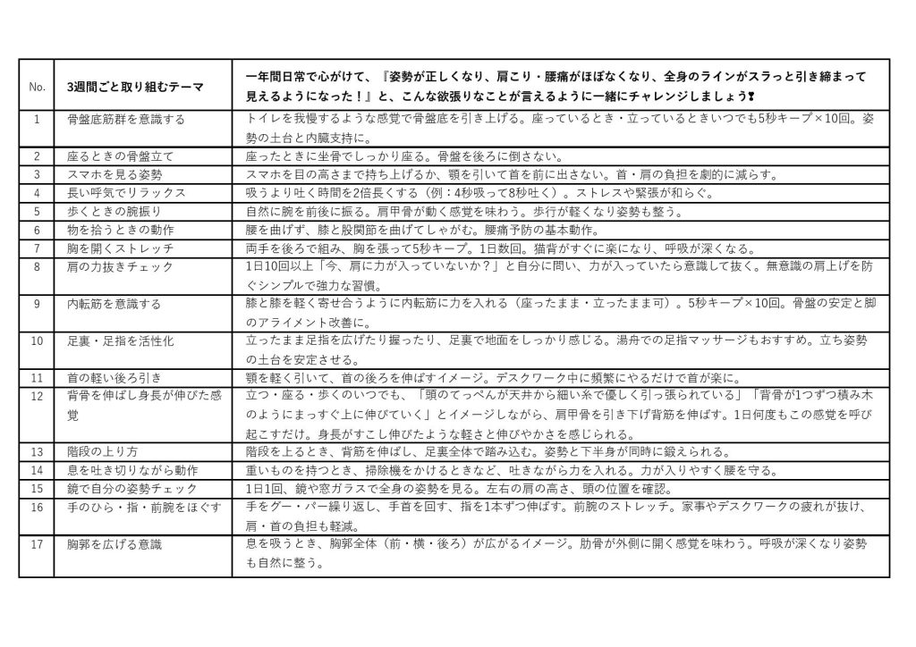 一年間で取り組むテーマは全部で17個。三週間ごとに変わっていきます。