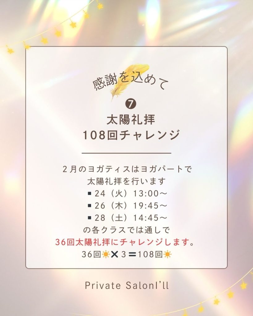 そんな素敵な太陽礼拝、一緒に108回チャレンジしましょう!
