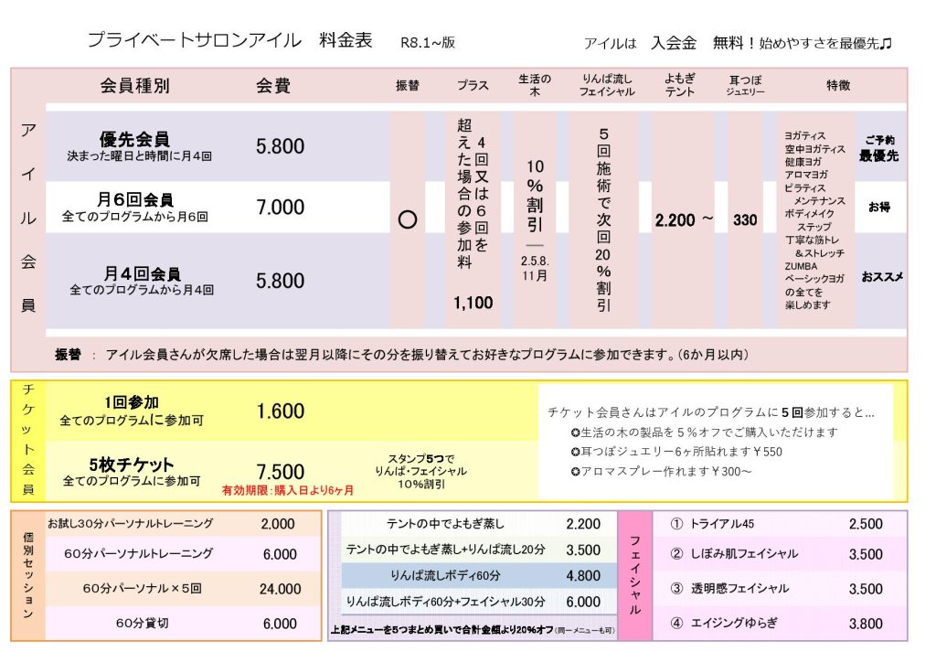 5,800  月4レッスン  ・優先会員(決まった曜日と時間を選択決定していただくのでご予約が最優先されます)
