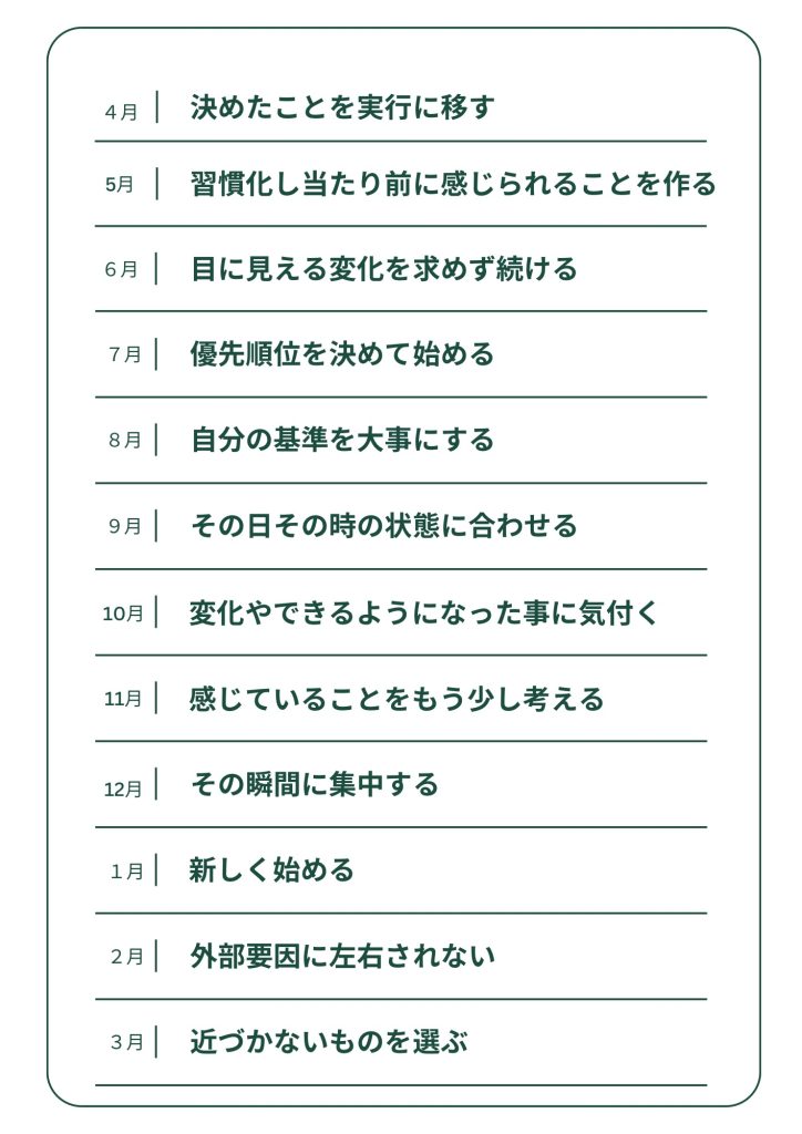 毎月のテーマは4月始まりで三週間ごとのテーマは1月始まりです。